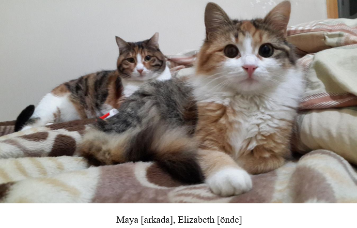 Maya’yı, Elizabeth’i bu ağaçların gölgesine defnettim. Şimdi benimle yolculuğa çıkacak olan; Portakal ve Turunç kedilerimin ömrü çok olsun istiyorum. Maya ve Elizabeth’in, bir ağacın altında yattığı yere gittim. Uyuduğu topraklara dokundum. Üzerlerini örten bir parça toprağı alıp, yüzüme sürdüm. Onların üzerinde bulunan yeşil bir tutam otları aldım. Usulca, “Yine geleceğim yanınıza. Hiç ayrılmayacağız” dedim. Şimdilik vedalaşmak, canımı çok yakıyor.