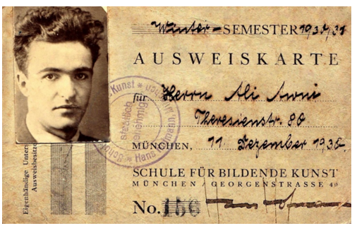 Theresien Strasse 80 adresinde ikamet eden Bay Avni Ali’nin (Çelebi). Münih Georgen Strasse 40 numarada hizmet veren Hans Hofmann Güzel Sanatlar Okulu’na, 1930-1931 Kış Sömestrinde sanat öğrencisi olarak kayıt yaptırdığını belgeleyen, sol üst köşede yer alan vesikalık fotoğrafının altında (zamanla silikleşmiş) Ali Avni olarak kişisel imzası bulunan, Hans Hofmann ıslak imzalı ve mühürlü resmi kimlik kartı Ali Çelebi’nin Ali Çelebi İkinci kere 1930 yılında Almanya’ya, Münih’e gittiği zaman çıkartılmış kimlik belgesidir. (Mehmet Günyeli. Ali Avni Çelebi ve Münih Günleri. EK Eleştirel Kültür Dergisi 9.Ocak. 2026. https://ekdergi.com)