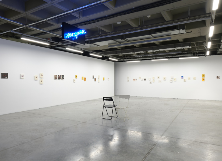 Ayşe Orhun Gültekin’in küratöryel yaklaşımı, kitapları kronolojik ya da türsel bir sıraya sokmak yerine, onları birlikte atan bir kalp gibi ele almakta. Serginin merkezinde tavanda yer alan, Sarkis’in el yazısıyla ürettiği çift taraflı neon ise açıklayıcı olmaktan çok çağırıcı bir işlev görüyor. Ne tam bir merkez ne de kesin bir yön; daha çok bütün halde bu çoğulluğu kendine doğru çeken sessiz bir odak.
