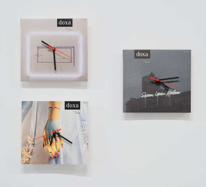 Öktem Aykut’un mekânına girdiğinizde genelde hissedilen ilk duygu, bir sergiyi gezmekten çok, çalışmakta olan bir yapının içine dâhil olma hissi… Dolayısıyla “İkil ve Çoğul” başlıklı yeni sergi, Sarkis’in Norgunk külliyatından yola çıkarak kurduğu bu yerleştirme için fazlasıyla yerinde olmuş. Duvarlara ve boşluklara yayılan “kitap-saat”ler, tekil nesnelerden çok birlikte işleyen bir zamanı görünür kılmakta.