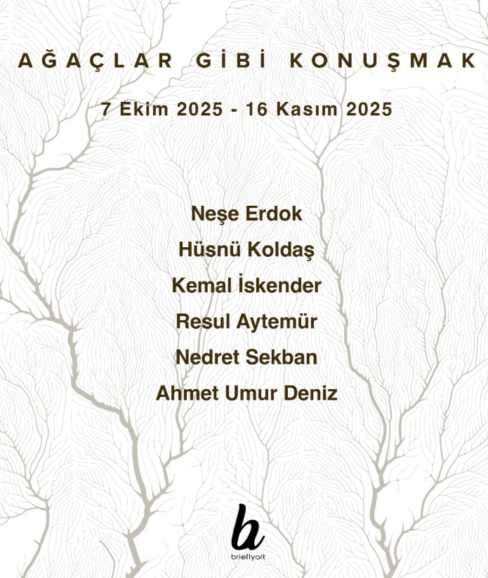 Neş’e Erdok, Hüsnü Koldaş, Kemal İskender, Nedret Sekban, Resul Aytemur ve Ahmet Umur Deniz’in eserlerini bir araya getiren “Ağaçlar Gibi Konuşmak” başlıklı grup sergi, 7 Ekim Salı günü Gümüşsuyu’nda yer alan Brieflyart Galeri’de ilk olarak sizlerle buluşuyor.