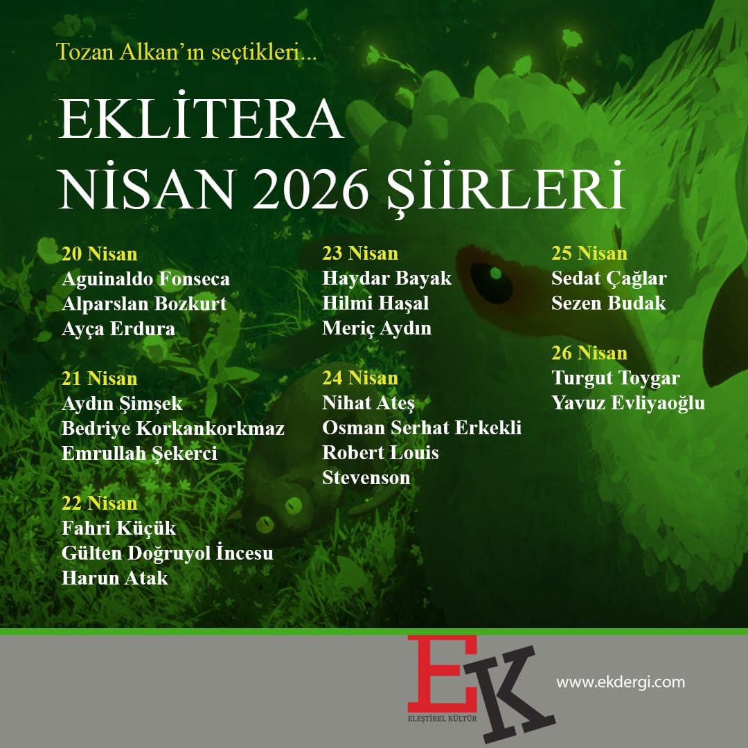 LiteraManşet#eklitera Nisan Şiir SeçkisiYazar: Ek Dergi28 Nisan 202628 Nisan 2026https://ekdergi.com/category/litera/
