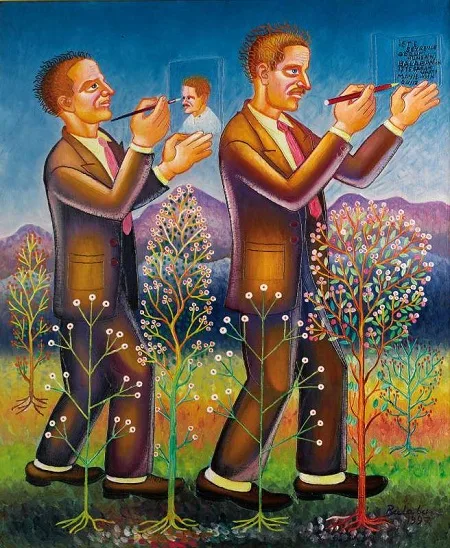 Bu çelişki şundan ötürü oldu: Yaşantımızın içinden çıkan bir durum. Mesela çarpık görüntülere bir nevi başkaldırma… Özgür olmadığım halde ve zaman zaman da baskı altında olmama rağmen kimsede görülmemiş tarzlar meydana getirdim. Hiç bir ressamda böyle bir uygulama yoktur. Yaptığım resimlerde hiç kimseyi model almadım ben. Yalnız Türkiye’deki yaşantıyı örnek aldım.