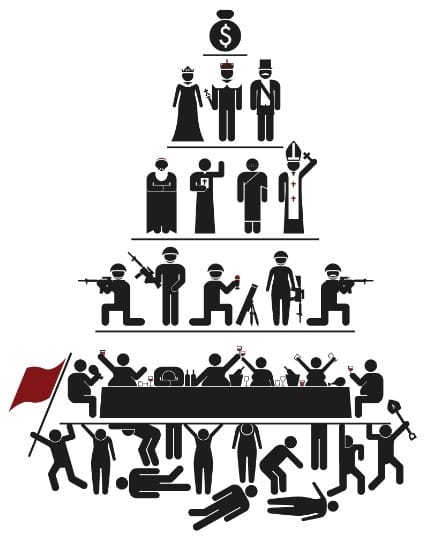 Bu bağlantıyı anlamanın bir yolu şu şekilde olabilir: Eğer emeği ücretli ve yabancılaşılmış emek olarak tanımlamaya başlarsan, işçi fikrini de kurban ve baskı sisteminin nesnesi olarak ele almaya başlarsın. Ve işçi (kurban ve nesne olan burada) hayatlarının standartlarını artırmayı amaçlayan bir mücadele hızla devlete yönelir. Neden? Çünkü devlet onu toplumdan ayıran belirgin bir ayrımla halk yararını yerine getirebilmek için herhangi birinin başvuracağı ideal kurumdur. Bu emek hareketinin ve hâlihazırda Latin Amerika’da var olan sol hükümetlerin geleneksel düşüncesidir.