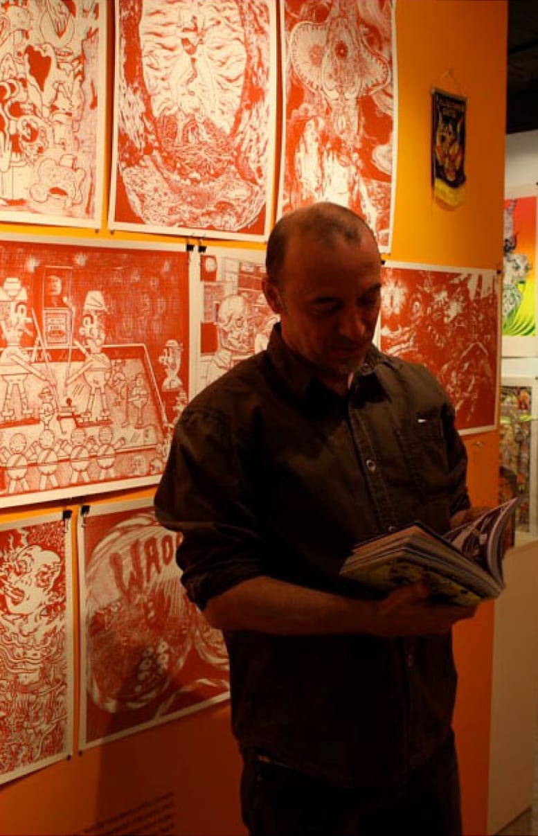 Pakito Bolino: Herşey iki sene evvel, Jorge Alderete’in Aix-en Provence’daki grafik roman festivali kapsamında düzenlenen sergide düzenlediğimiz workshop’u ziyaretiyle başladı. Le Dernier CRI’nin işlerine bakmaya geldi, görsellerle ve kitaplarla dolu duvarları görünce “En kısa zamanda bir sergi yapmalıyız.” dedi. O dönem kafamızda Vertigo’nun açılış sergisini yapmak vardı ama maalesef olmadı ve ertelendi; fakat açılışının ikinci yıl dönümünde nihayet buradayız ve bundan dolayı gayet memnunuz.