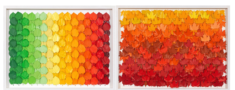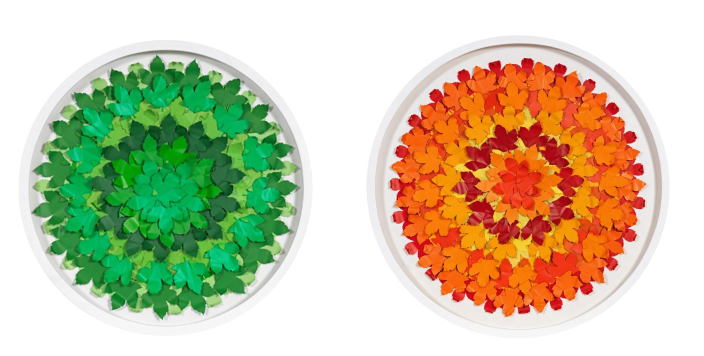 Giriş kattaki “Still Life” başlıklı eserler, alüminyum malzemenin akrilik boyayla buluşmasıyla ortaya çıkıyor. Sanatçının özellikle sevdiği meşe ve ıhlamur ağaçlarının sarıdan turuncuya, kırmızıya uzanan renkli yapraklarından esinlenen bu çalışmalar; görünüş ve gerçeklik, kalıcılık ve geçicilik, doğa ve yapaylık arasındaki gerilimi yansıtıyor. Endüstriyel ve üretilmiş bir malzeme olmasına rağmen, alüminyum yapraklar doğal muadillerinin kırılganlığını ve hafifliğini hissettiriyor.