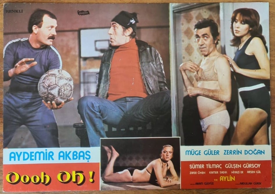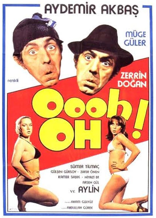 Yeşilçam’da 1970’li yılların ikinci yarısındaki erotik güldürü filmleri (o dönemin terminolojisiyle “seks komedileri”) furyasının en sıra dışı yıldızı Aydemir Akbaş’tı. Bu filmlerin erkek başrol oyuncularının çoğu yakışıklı sayılabilecek, en azından “fiziği düzgün” erkekler iken Aydemir Akbaş ise Agah Özgüç’ün ifadesiyle “keskin hatlı, harita yüzlü, yamuk yumuk yürüyen bir küçük adamdı.” Özgüç, Akbaş’ın erotik güldürülerin ilk dönemdeki önde gelen bir diğer başrol oyuncusu olan Ali Poyrazoğlu karşısında “’sokaktaki adama’ veya bir taşralıya daha yatkın bir tip” olduğunu savunur (*). Akbaş’ın tipinin seyircinin özdeşleme dinamikleri için ne ifade ettiği başlı başına ayrı bir incelemenin konusu olabilir. Bu yazıda ise yerli erotik güldürülerin bu sıra dışı yıldızının en ilginç ve de en sıra dışı filmlerinden birini, Aram Gülyüz’ün yönettiği 1978 yapımı (Şubat 1979’da gösterime girmiş olan) Oooh Oh!’u mercek altına alacağım.