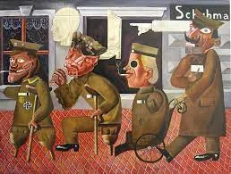 Ressam Otto Dix, Kriegskrüppel (Savaş Sakatları) adlı eseriyle savaştan kör, tekerlekli sandalye mahkûmu ya da kolsuz-bacaksız dönen gazilerin yürüyüşünü resmederken bir yandan da toplumsal bilincin yaralı ve sakat kalmışlığını gösterir.