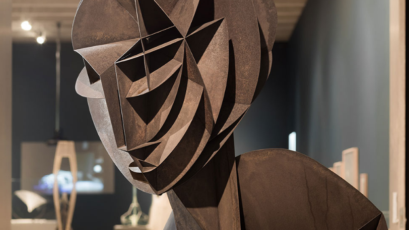 Gabo, yüz ve kafatası ile ilgili yapının kesişen düzlemlerini yansıttığı rölyef zeminin çerçevelenmiş ve özelleşmiş bağlamını korumaktadır. Tatlin’in köşesi, Gabo figürünün tüm kafasını kapsayacak şekilde duvarların gerçek sınırlarının ötesine genişletilmesi gereken ideal bir küresel hacimden dilimlenmiş, 90 derecelik kamaya dönüştürülmüştür.