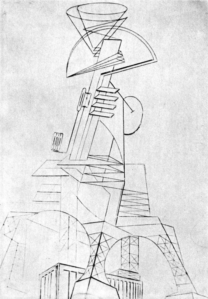 Gabo’nun 1919-20 yılları arasında Serpuçov kenti için yaptığı “Bir Radyo İstasyonu” projesi hem Delaunay’ın Eyfel Kulesi tablosunu hem de eğimi ve ölçeğiyle Tatlin’in kulesini andırmıştır. Gabo, bir süre sonra bu tür yapıtlarına eleştirel bir gözle bakmaya başlamış ve yaşamını saf heykel biçimleri üzerinde çalışmaya adamıştır.