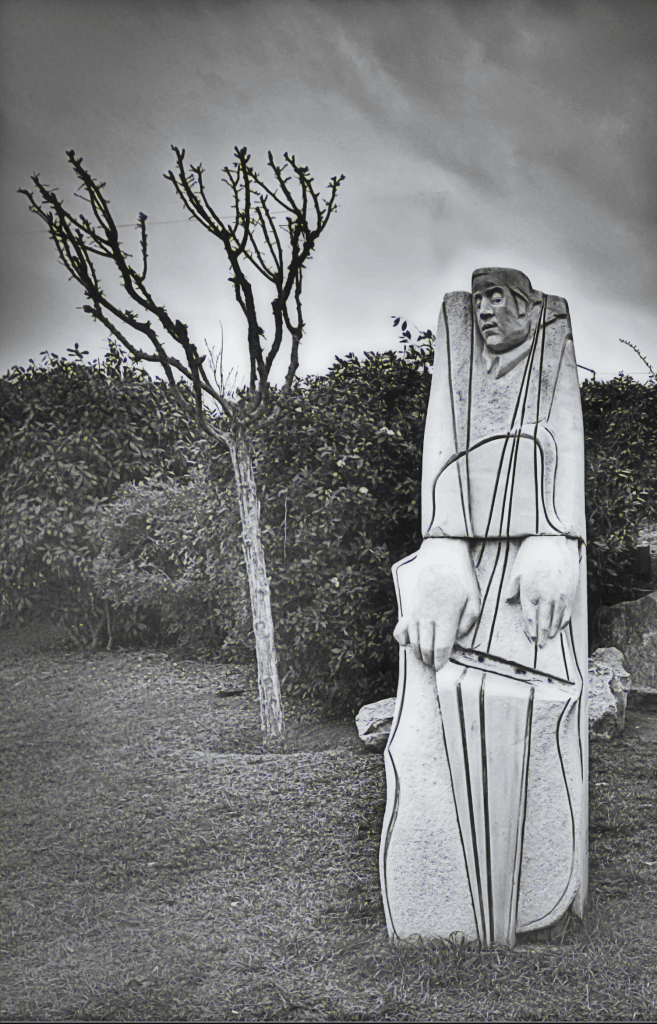 Bir kent parkında duruyorum. Gökyüzü grinin tonlarından tonlarına dolaşıyor, çimenlerin üzerinden kış henüz çekilmemiş; yorgunlar. Birkaç adım ötemde bir ağaç, yapraklarını çoktan bırakmış, dalları gökyüzüne doğru çıplak kollarını uzatmış, bir damar gibi, bir akciğer gibi. Soluk alıyor, ama yaprak yok; soluk var, ama ses yok. Sonra bakışım sağa doğru kayıyor, işte orada; çalılardan oluşturulmuş çitlerin önünde taştan bir figür karşılıyor bakışlarımı. Bir adam ya da bir adamın hatırası, kucağında bie çello, parmakları tellerde, gövdesi enstrümanıyla bütünleşmiş. Her şey taştan; parmaklar, teller, sesin kendisi.