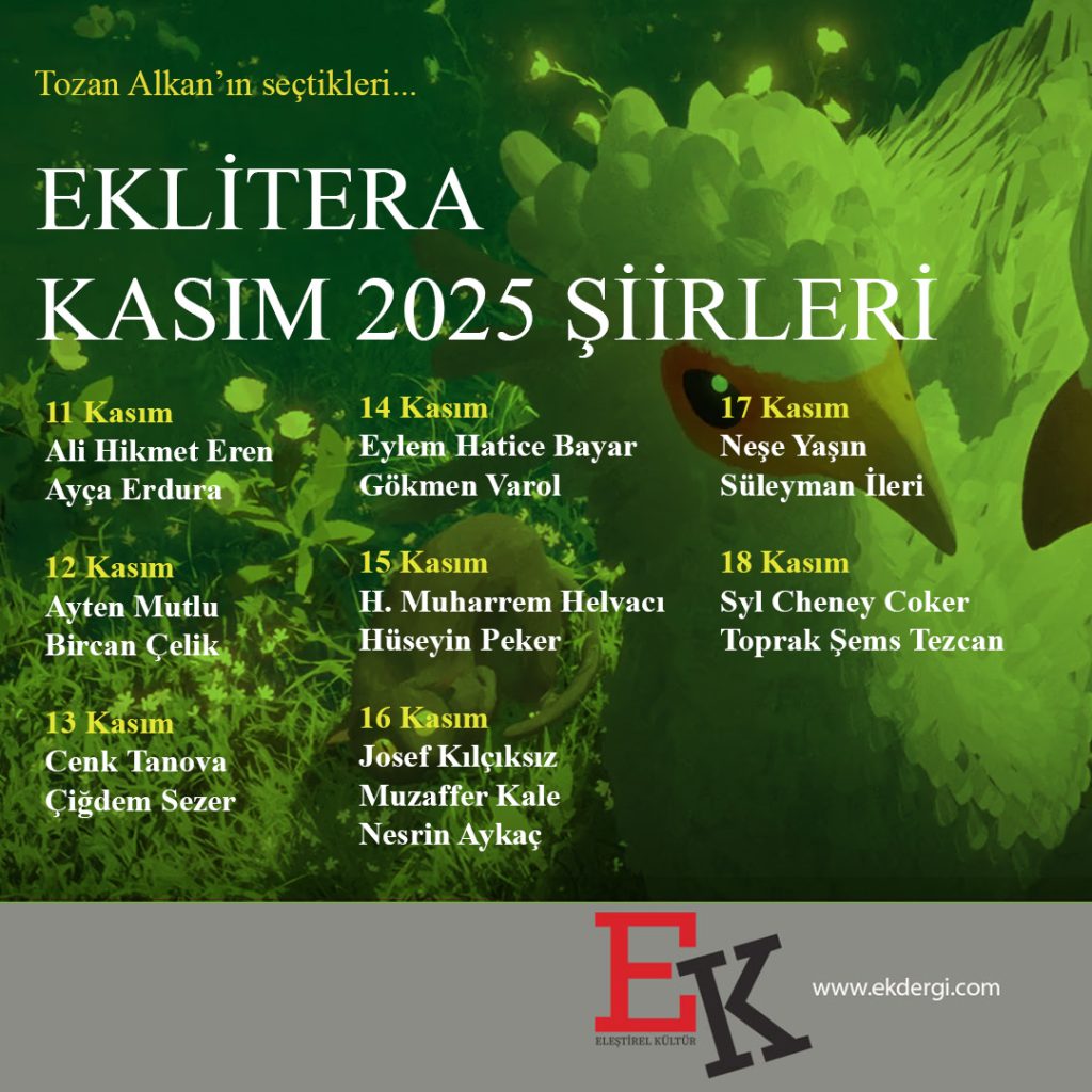 ManşetTozan Alkan Seçiciliğinde #eklitera Kasım ŞiirleriYazar: EKBülten19 Kasım 202519 Kasım 2025https://ekdergi.com/category/litera/