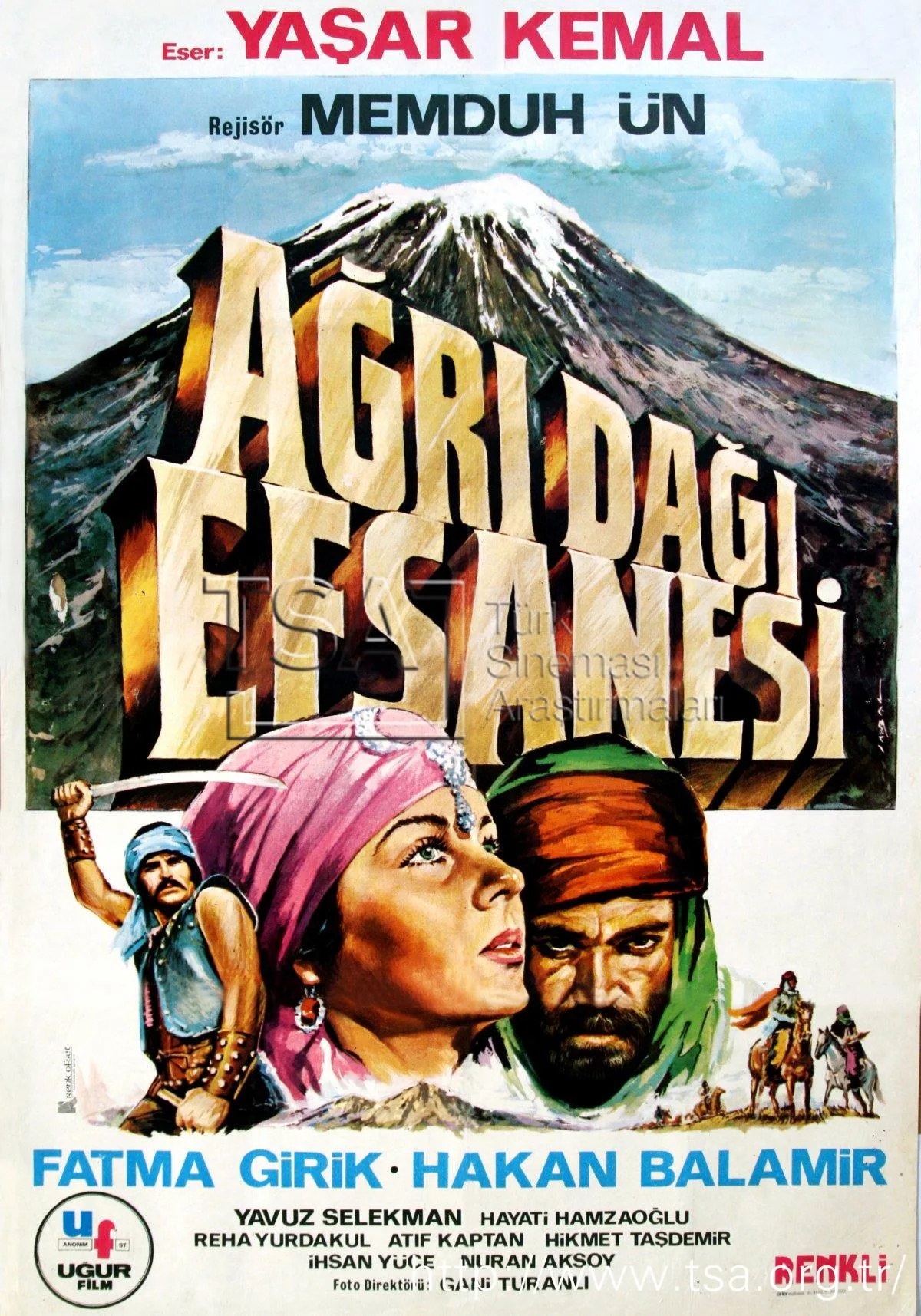 Yönetmen ve yapımcı koltuğunda Memduh Ün’ü, senarist koltuğunda Lütfi Ö. Akad ve Duygu Sağıroğlu ve yine Memduh Ün’ü, oyuncu olarak Hakan Balamir (Ahmet), Fatma Girik (Gülbahar), Hayati Hamzaoğlu (Mahmut Han), Yavuz Selekman (Zindancı Memo), Reha Yurdakul (Demirci Hüso), Hüseyin Peyda (Kervan Şeyhi), İhsan Yüce (Vezir, İsmail Ağa), Nuran Aksoy (Mahmut Han’ın Kızı), Coşkun Göğen (Gülbahar’ın kardeşi Yusuf) ve Atıf Kaptan’ı (Sofi) gördüğümüz Yaşar Kemal uyarlaması Ağrıdağı Efsanesi, modernizm öncesi bir anlatı olması, ticari bir kaygı gütmemesi, mitsel bir sinema dili yaratma çabası, müzikleri (Yalçın Tura) vd. ile incelenmeyi hak eden bir film. 1976 Antalya Altın Portakal Film Festivali’nde En İyi Görüntü Yönetmeni Ödülü’nü alan film (Gani Turanlı), çekim sorunlarını bir yana bırakırsak, canlı görüntüleri ile izleyiciyi uzaklara ve geçmişe götürmekte başarılı.