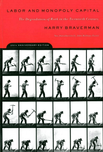 Neden her yeni teknoloji işi kolaylaştırmıyor gibi görünüyor? 1974’te Harry Braverman, bu soruya cevap vermek için Labor and Monopoly Capital: The Degradation of Work in the Twentieth Century adlı önemli bir metin yayımladı. Bilimsel yönetim ve teknolojik yeniliği dikkatlice inceleyen Braverman, Karl Marx’ın birkaç temel kavramıyla birleştiren Braverman, kapitalizm döneminde işçilerin neden yavaş yavaş makinenin sadece dişlilerine dönüştüğünü açıkladı.